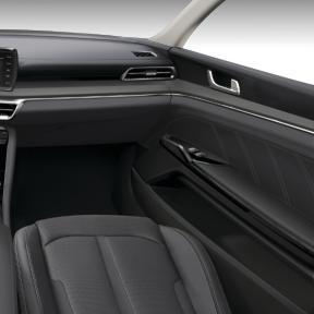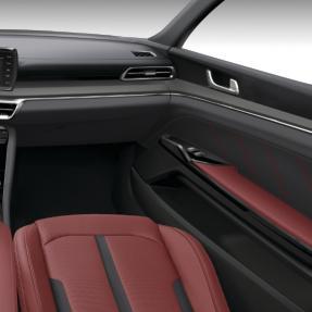 值得一提的是沙灰米色,与常见的米色有所不同,它更像带有一点点暖色调的沙石灰,与点缀其中的黑色形成对比,不仅体现出未来感,同时也让凯酷(ALL NEW K5)的内饰空间变得更温暖,更有归属感。另外,上下水平颜色分割在视觉上拉大了空间感;主装饰件上低彩度金属感木纹,相比传统木纹,更具年轻气质;真皮座椅和门板上都有着简单的线型分隔,呈现出精致简约的工艺质感。